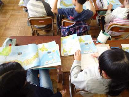 日本の国土と日本の周辺の国について,地図帳を使って調べました。