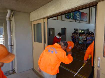 5月8日(月)いつも子どもたちの登下校の安全を見守っていただいている。見守る会の方への感謝式を行いました。児童会の代表の児童から,感謝の言葉としおりが贈られました。
