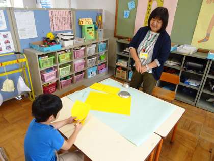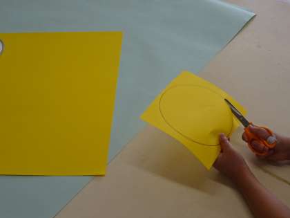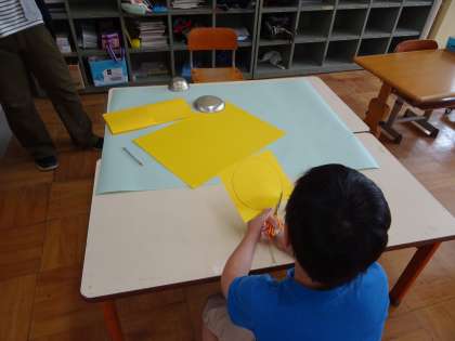 ひまわり学級では,色画用紙を使って大きなひまわりを作っていました。