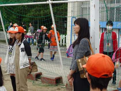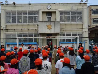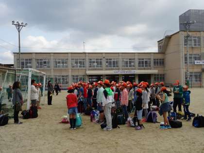 午前8時過ぎ。6年生全員で出発式を行いました。司会を言葉を担当する児童の運営により,円滑に式は進みました。