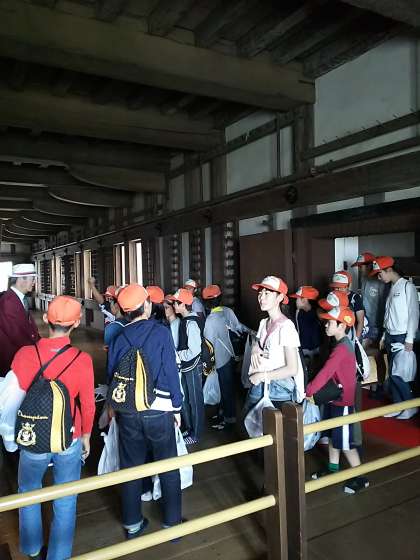 天守閣の見学を開始しました。急な階段を少しずつ上っていきました。