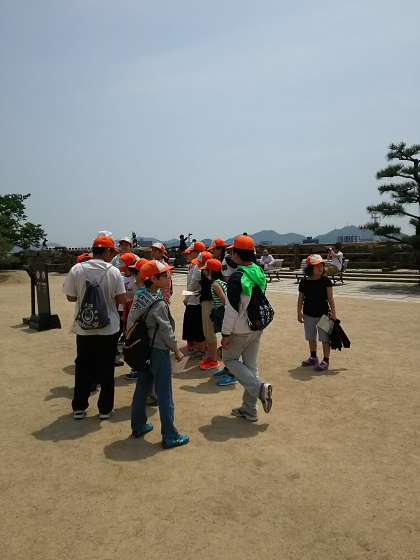 天守閣を降り,空腹の児童も増えてきました。