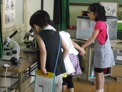 2年生は1年生に,各場所の説明を丁寧にしてくれています。