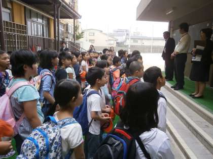 普段の教室で行う授業とはちがった雰囲気に多少緊張気味です。