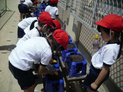 連休明けにアサガオの種を植えました。毎朝水やりを頑張っています。芽がでているとたくさんの子が嬉しそうに教えてくれました。