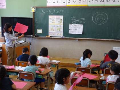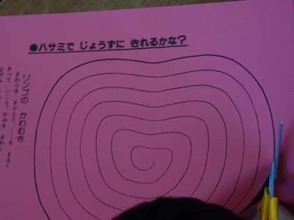 飾りを作るために,はさみを使って線を切る練習をしていました。