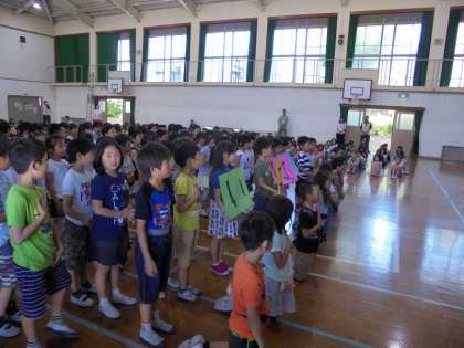 5月22日に1年生のお迎え集会がありました。1年前は迎えられる立場だった2年生ですが,今年は迎える立場として立派な姿を見せてくれました。この日のために3クラスで頑張ってきた歌と言葉の練習の成果を発揮することができました♪