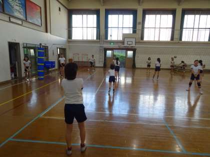 バレーボール部の活動の様子です。友達とペアになり,レシーブの練習に取り組んでいました。