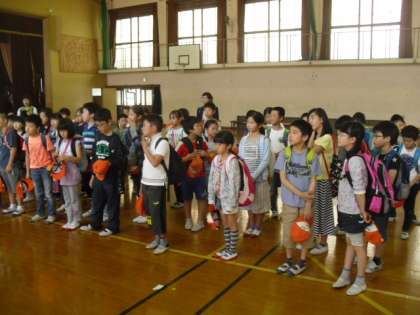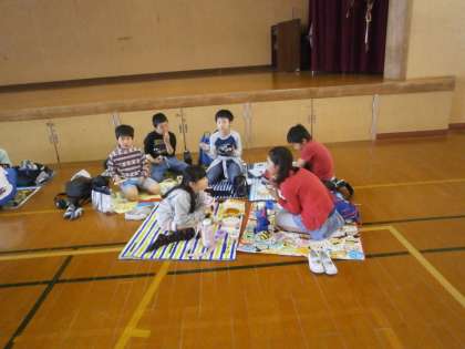 センター内体育館を借りて昼食のお弁当を食べました。