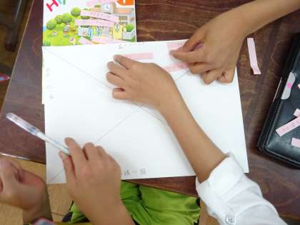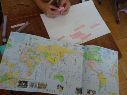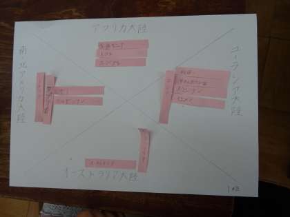 5年生は地図帳を活用し,Xチャートに分類をする練習をしていました。