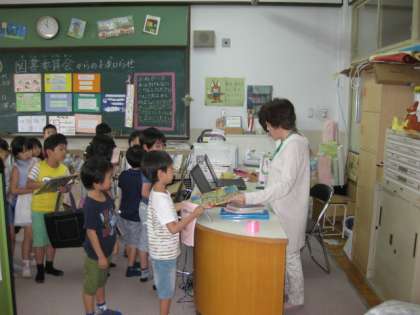 話しをしっかりと聞いた後は,実際に借りた本を返してみました。うまく返せたかな?