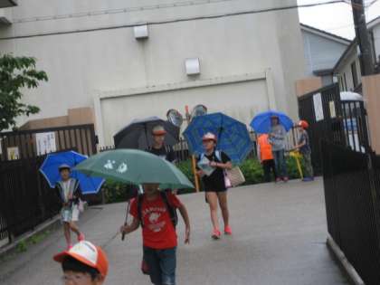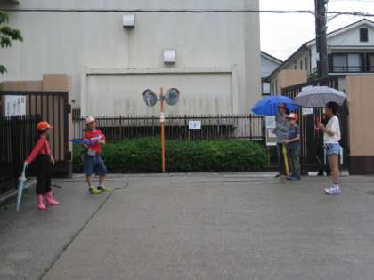 本年度2回目のあいさつ運動の日です。今日は,あいにく小雨が降っていました。