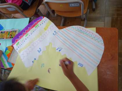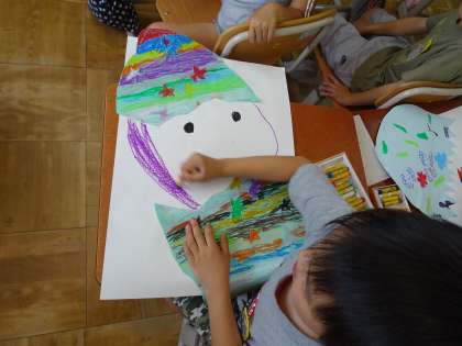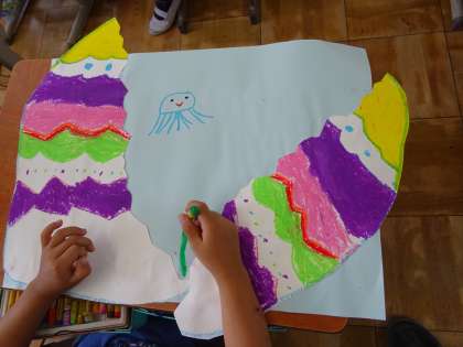 割れた卵を模造紙や画用紙に貼り付けていきました。