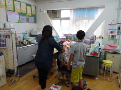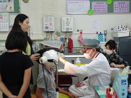 学校医の先生に耳・鼻・喉を診ていただきました。