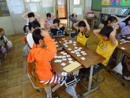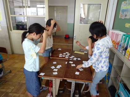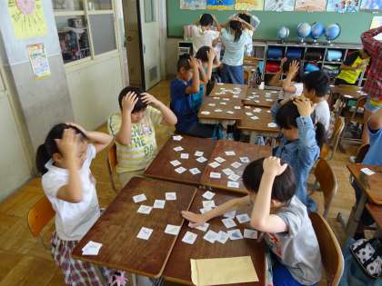 食べ物やスポーツなどの表現について,日本語と英語の音の違いに気付き,ゲームをして違いに慣れていきました。