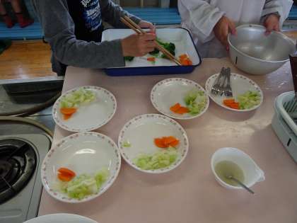 「ゆで野菜のサラダ」を調理実習で作りました。グループで協力して,手際よく調理していきました。