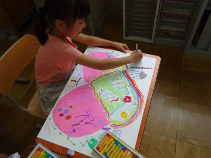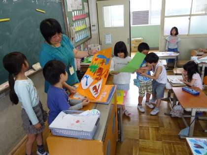 できあがった作品を友達と見せ合ったり,先生にアドバイスをもらったりしていました。