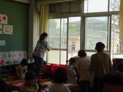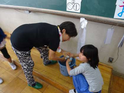 子どもたちと一緒に,掃除をしてくださいました。中には,ぞうきんの絞り方やほうきの使い方を改めて教わっている子どももいました。