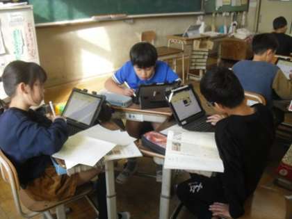 伝統工芸品について調べ、リーフレットを作成する学習も大詰めです。分かりやすくまとめる工夫を、友だちと話しながら頑張っています。