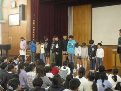 仲間の頑張りをたたえる拍手が体育館いっぱいに広がり、子どもたちの笑顔が輝いていました。