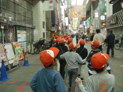 伏見板橋探検隊の3年生は、今日は大手筋商店街と御香宮に分かれて見学しました。