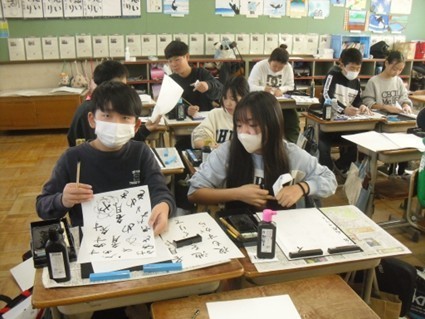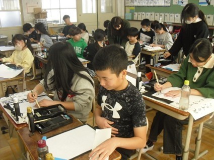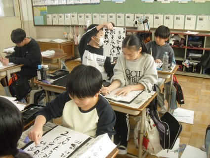 6年生は書写の学習で、文字の大きさや配列に注意しながら丁寧に筆を運んでいました。落ち着いた雰囲気の中で集中して取り組んでいます。