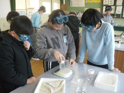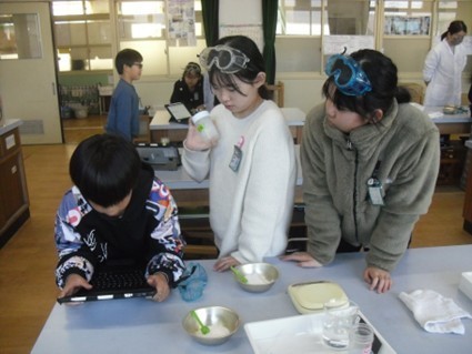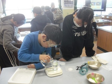 水に食塩を入れる前後の重さを比べ、「溶けても重さは変わらないのか」を予想して実験しました。結果から理由を考え、学びを深めました。