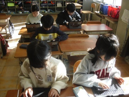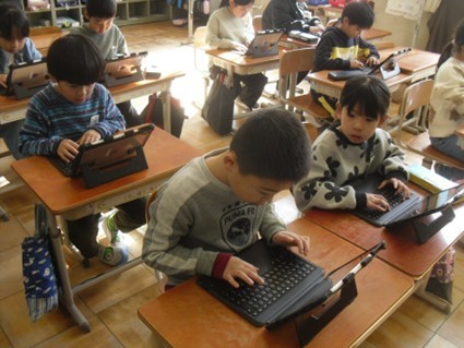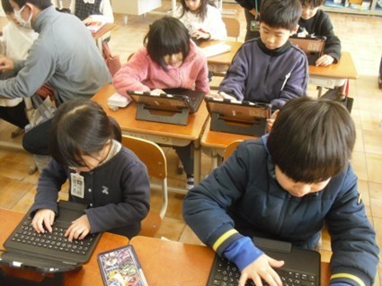 を使ってキーボードの文字入力練習に取り組んでいました。