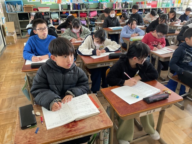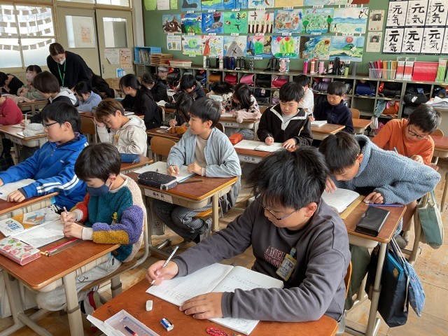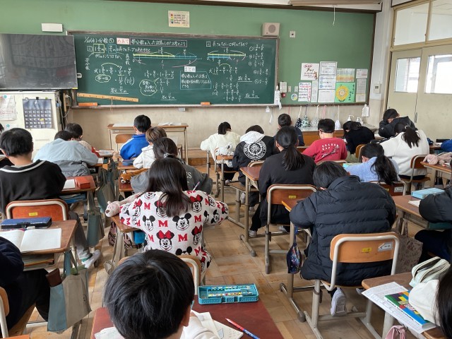 分数の学習で、帯分数の入った計算に取り組んでいます。みんな集中して、黙々と問題を進めていました。