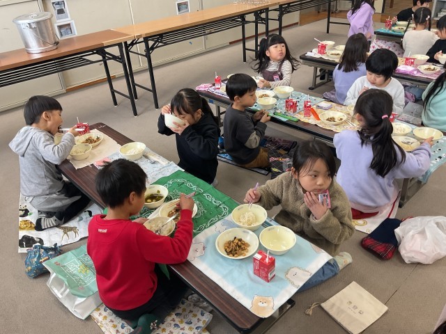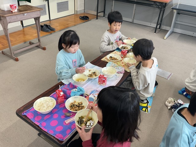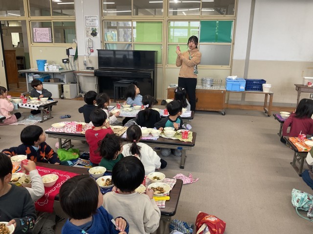 園児たちを気遣いながら一緒に給食を食べる姿に、1年生の成長を感じる時間となりました。