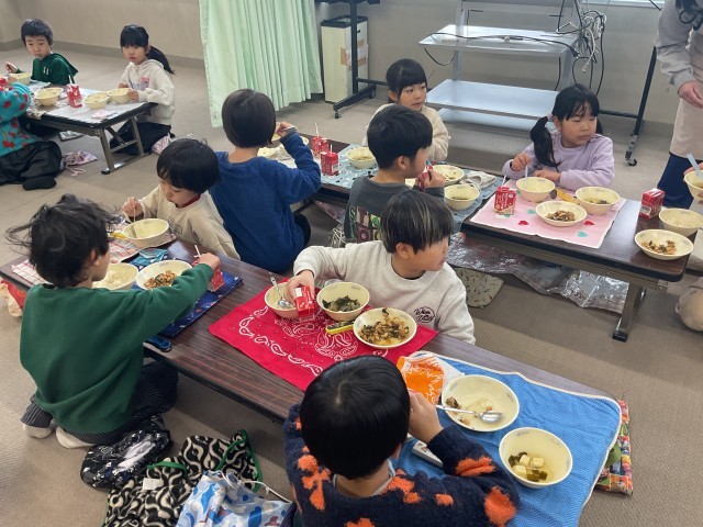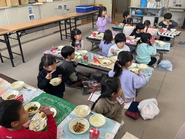 1年生は、板橋幼稚園の園児たちと一緒に給食を食べました。