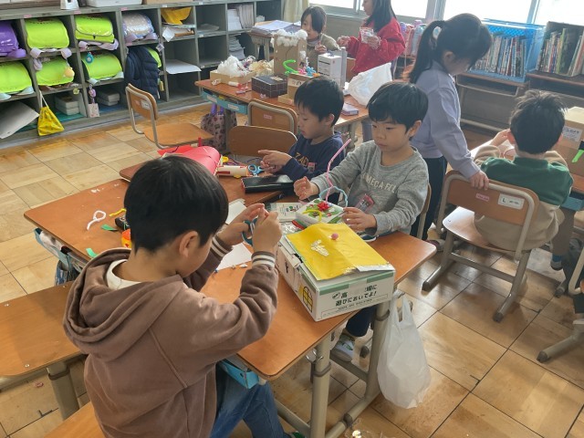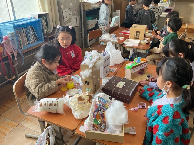 1年生は、図画工作で「宝物ボックス」を作っています。