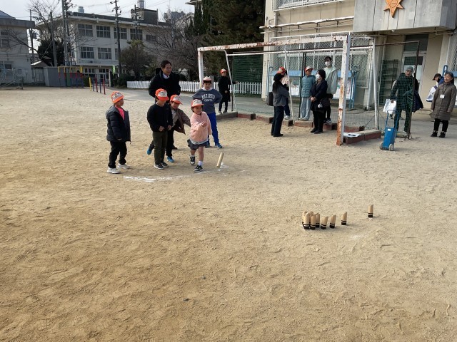 「お外で遊ぼう」では、伏見区役所やスポーツメーカーの方にお越し頂き、モルックを教えていただきました。