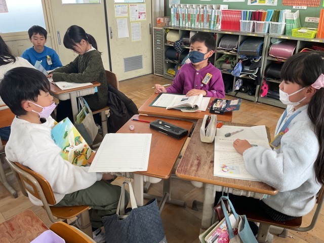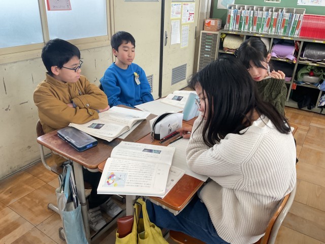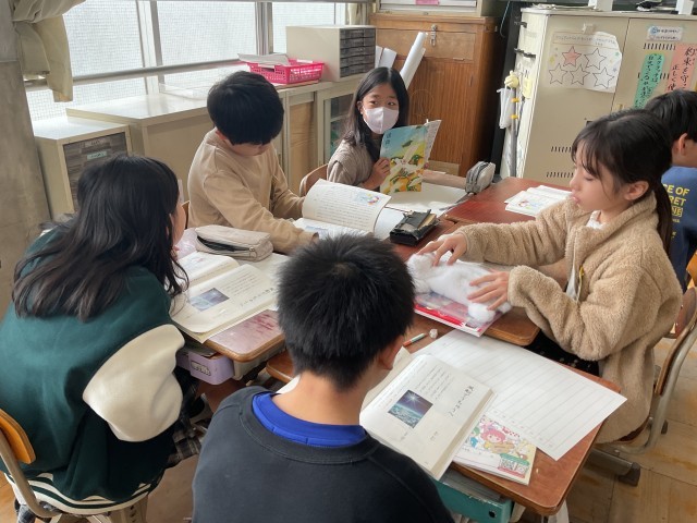 説明文「風船で宇宙へ」を読んでいました。今日は、各段落の内容や文章全体の構成を確かめながら、グループごとに話し合って学習を深めていました。