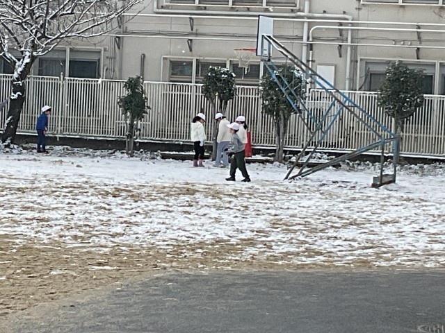 今朝は、伏見でもめずらしく運動場に雪が積もりました。