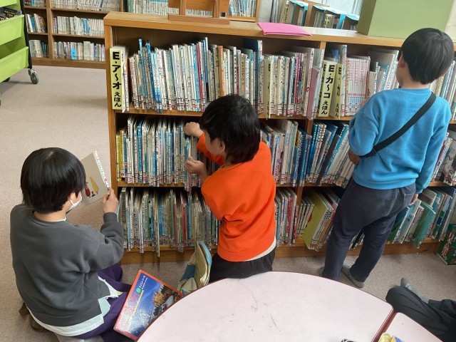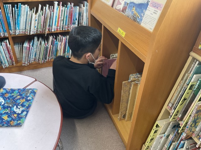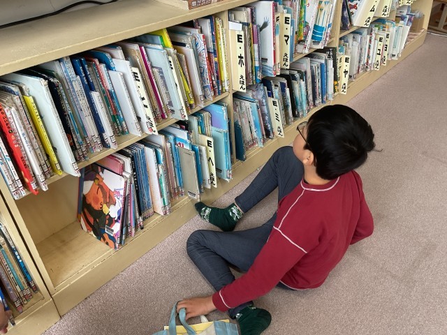 ひまわり学級では、自分の興味のある本を手に取りながら、読みたい本を主体的に選んでいます。