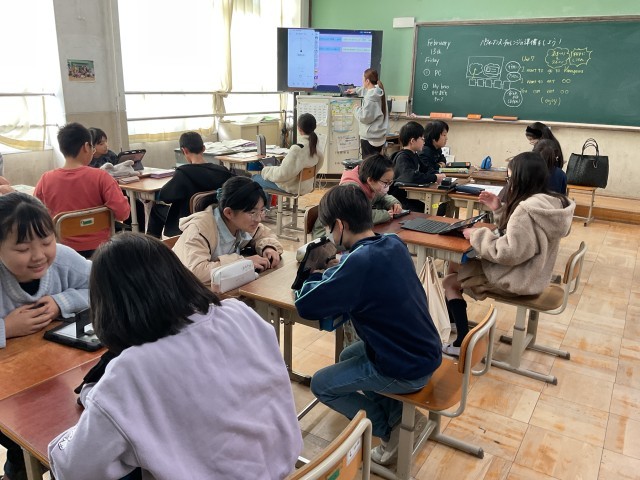 好きな食べ物や行きたい場所などを「I want ~.」を使って相手に伝えたり、質問を考えたりしながら、楽しそうに活動していました。