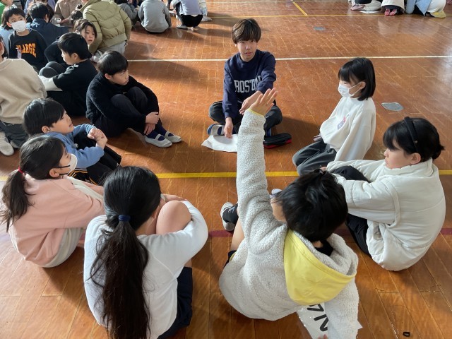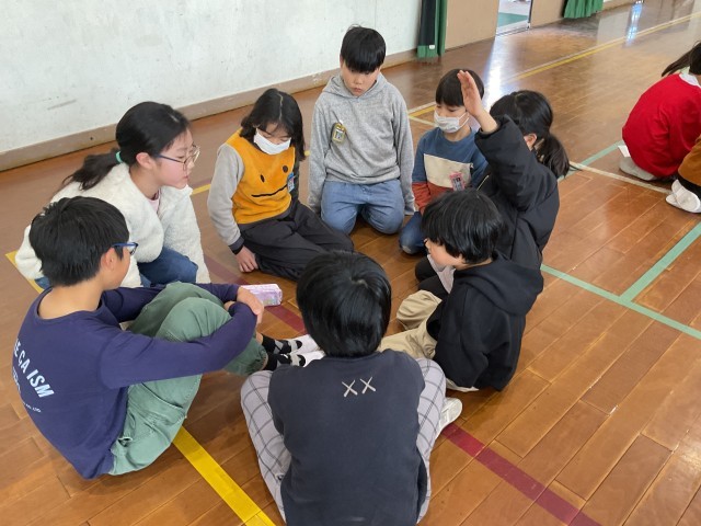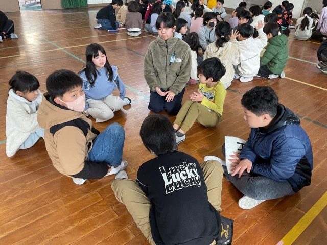 その後、子どもたちは縦割りグループに分かれ、テーマについて話し合いました。互いの意見に耳を傾けながら真剣に考えている子どもたちの姿がみられました。