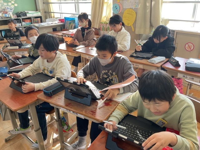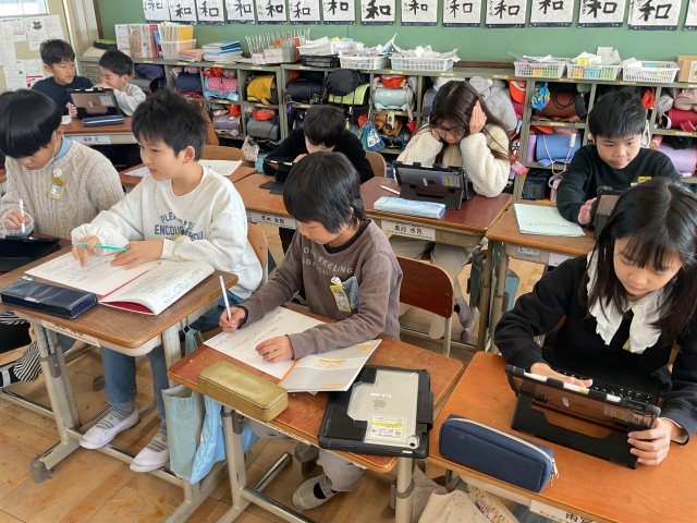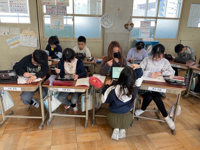 国語で詩づくりに取り組み、擬音語や言葉の順序などを工夫しながら、自分の詩を最後まで丁寧に仕上げました。