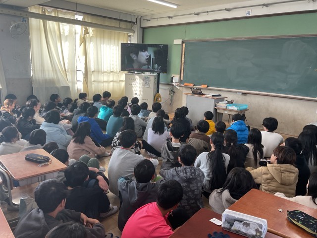 6年生の教室では、送る会に向けて歌をみんなで聴いていました。どんな気持ちで当日を迎えるのかを感じ取りながら、静かに耳を傾ける姿が見られました。