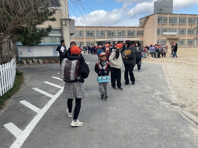 集会の後は、町内ごとに分かれて集団下校を行い、実際の動きを確かめながら安全に下校することができました。