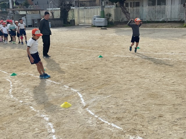 「とび遊び」の学習では、いろいろな跳び方に挑戦し、距離やスピードを変えながら楽しく活動していました。