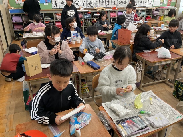 友だちと作品を見合って「ここいいね」「こうしたらもっと良くなるよ」と話し合いながら、工夫を重ねている姿が印象的でした。