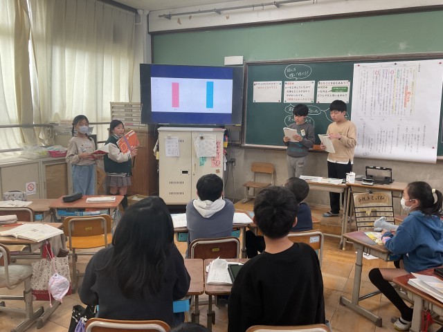 今日は、話し合って決めたテーマをもとに調査し、まとめた内容の発表会を行いました。