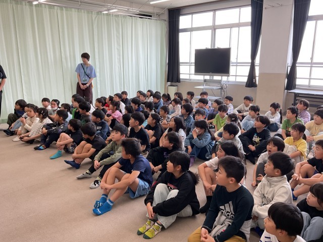 子どもたちは静かに集中して話を聞いています。