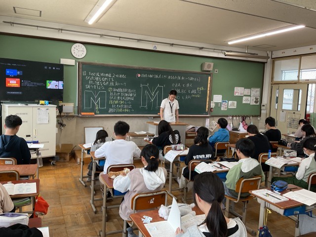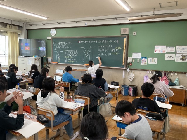 対称の軸で折ったときに、線や点がどのように重なるか調べています。
