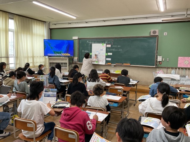 日本の国土について勉強をしています。地図を見ながら日本の国土についてまとめています。