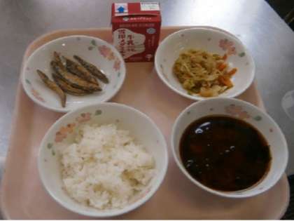 「あかだしのみそがこくておいしかったです。きびなごのこはくあげがしっりあがっていておいしかったです。」・・・5の1