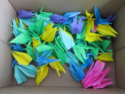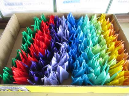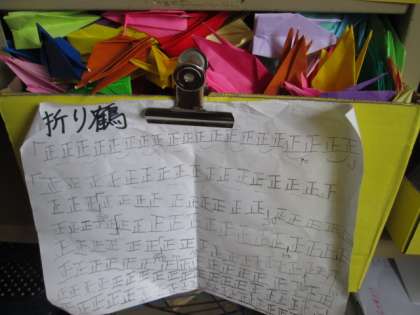 修学旅行に向けて,各クラスで千羽鶴作りを始めました。折り鶴に平和への願いを込めて,一羽一羽丁寧に折っています。修学旅行1日目に,原爆の子の像まで持って行きます。