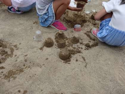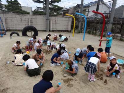 各クラスごとに砂場で活動する,図工の授業が終わりました。